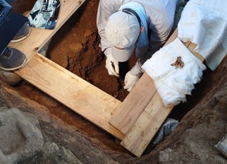 今回の第4次調査では2号墓壙の調査を実施し、成人男子の遺骨を検出した。さらに墓石が本来建てられていた位置を確認し、千々石ミゲル夫妻伊木力墓所の造営過程や構造を明かにすることができた。